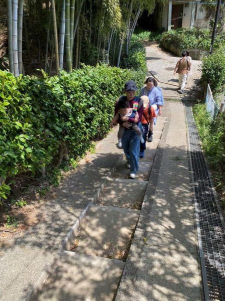 本丸広場までの山道は、それほど長くはなかったですが、急な坂だったので子供を抱っこしての移動はなかなか疲れました。ベビーカーで来ている方も一部いましたが、山道も狭いし、坂道なので、ベビーカーで行くのはちょっと大変そうだったので、抱っこ紐で行って正解でした。