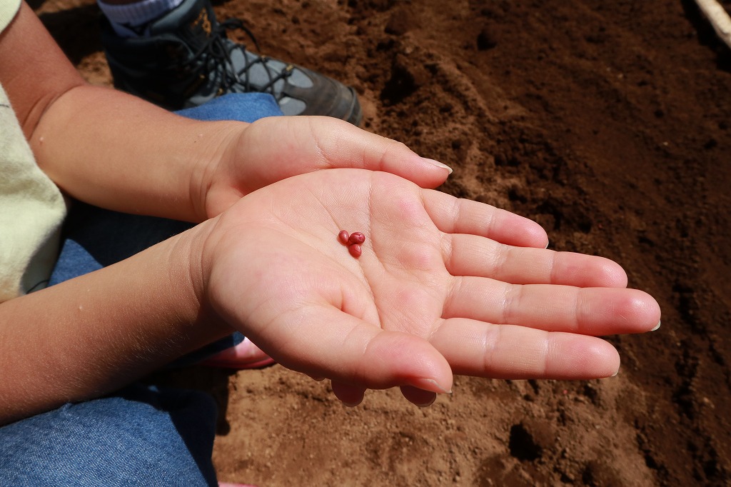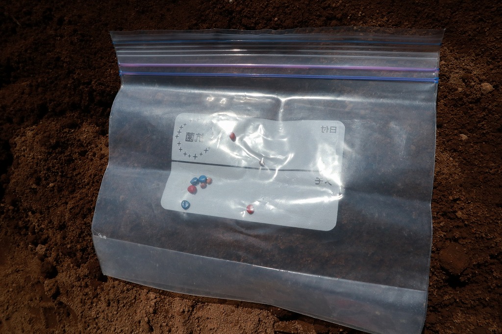 そのあと所定の位置に1種類ずつ大根の種を蒔きました。