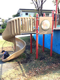 - 夕方、すべり台など小学生と一緒に遊ぶことも。結構激しく遊ぶ小学生にどう対応すべきか悩む。(今は見守っているとやめる)
