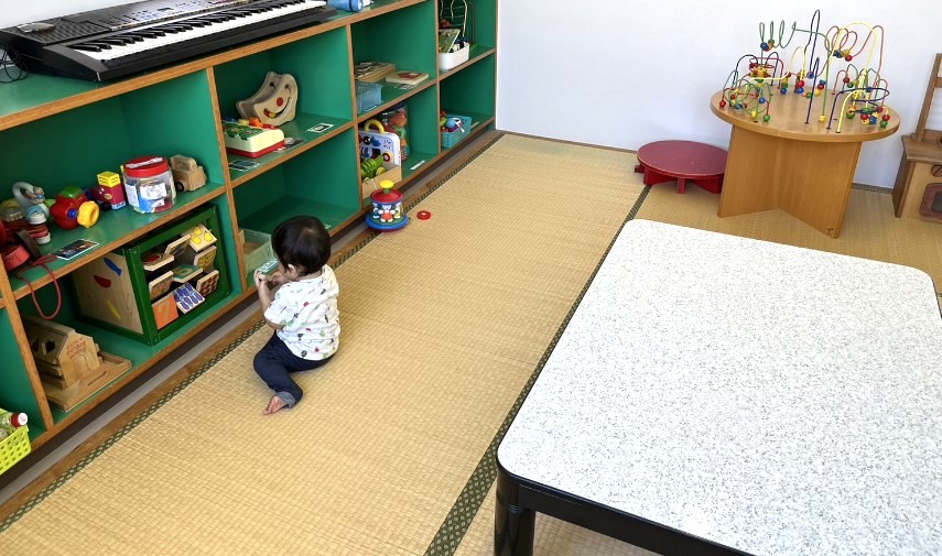 室内はそこまで広くないですが、子どもがのびのびと動いて遊べる広さは十分にあります。目が届く範囲なので、親は座ったまま子どもが遊んでいる姿を見守ることができます。最初は私にしがみついていた息子も子育て支援者さんが優しく声をかけて下さったおかげで、段々と慣れてきたのか目を輝かせながらおもちゃで遊んでいました。
