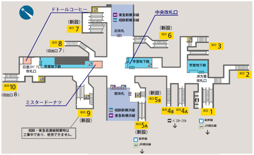 ① JR横浜駅から東急新横浜駅へ