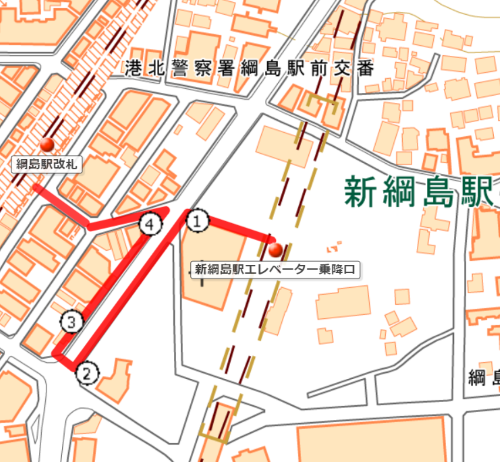 新綱島駅から綱島駅への移動ルート