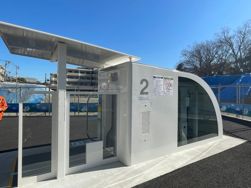 バス乗降場の近くに地下駐輪場を発見(収容台数504台、定期利用のみ)。自転車は自動で地下へ運ばれていくそう、なんだかSFっぽい!駅南側に一時利用できる平面駐輪場もありました。