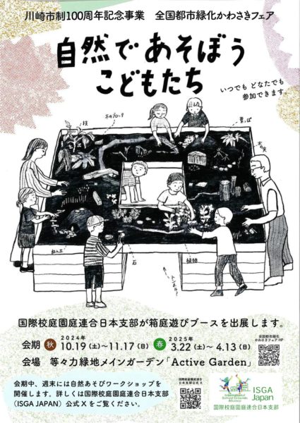 川崎市政100周年記念事業「全国都市緑化かわさきフェア」内で国際校庭園庭連合日本支部が箱庭遊びブースを出展します。週末には自然あそびワークショップを開催します。 […]