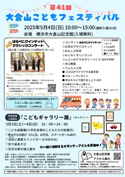 開催日時:2025年5月4日(日) 10:00~15:00 会場:横浜市大倉山記念館 入場無料・ ギャラリーは3日(土)も開催! ◆有料イベント・コンサート ~ […]