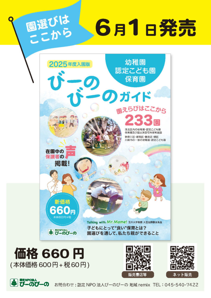 2024年4月開設の新設園を含む233園を掲載、園情報ページは「保護者の声」を中心とした内容に刷新し、お求めやすい新価格660円(税込み)にて販売いたします。